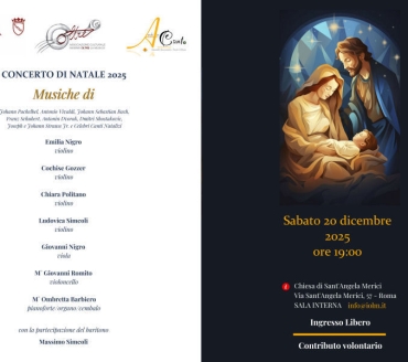 Sabato 21 dicembre 2024 alle ore 20:00 e lunedì 6 gennaio 2025 alle ore 19:00 la Chiesa Scozzese di St.Andrew di Roma ospiterà due concerti con musiche intonate al tepore delle festività natalizie, organizzati dall’Associazione Musicale Reggina Domenico Scarlatti in collaborazione con l’Associazione Culturale Insieme Oltre la Musica e l’Ensemble Strumentale e Vocale ArchiinCanto, assieme al prezioso apporto di stimati professionisti del canto come il soprano Bruna Tredicine, il contralto Tiziana Pizzi e il baritono Patrizio La Placa.